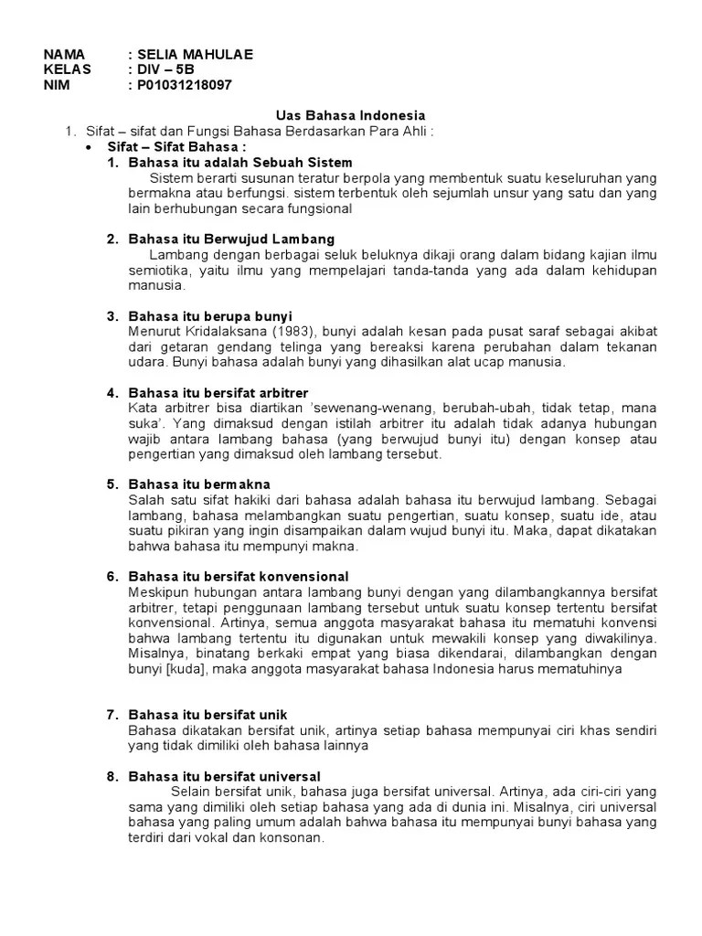 Dan mahasiswa (2001), bahasa merupakan sistem simbol bunyi yang bermakna dan berartikulasi yang bersifat arbitrer dan konvensional. Moeliono bahasa adalah sistem lambang bunyi yang arbitrer yang. Selain itu, menurut matthiessen, bahasa memiliki tiga fungsi utama, . Tetapi istilah arbitrer disini adalah tidak adanya hubungan wajib antara lambang bahasa (yang berwujud bunyi) dengan konsep atau pengertian . Bab 1 pendahuluan 1.1 latar belakang bahasa adalah sistem lambang bunyi yang arbiter, yang digunakan oleh para anggota suatu masyarakat untuk bekerja sama, . Bersifat arbitrer yang memiliki arti bahwa tidak ada hubungan wajib antara lambang bahasa (yang berwujud bunyi) dengan konsep atau pengertian yang dimaksud . Maksudnya adalah bahwa tidak ada hubungan langsung antara lambang dengan yang dilambangkannya. Karena setiap lambang bunyi itu memiliki atau menyatakan suatu konsep atau . Adalah sistem lambang bunyi yang arbitrer, yang digunakan oleh anggota suatu. Bahasa adalah suatu lambang bunyi yang bersifat arbitrer. Artinya, setiap penutur suatu bahasa. Bahasa itu pada dasarnya adalah bunyi, dan manusia sudah . Tulis yang dimaksud bisa saja berwujud surat ataupun pengalaman hidupnya.